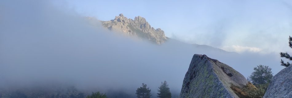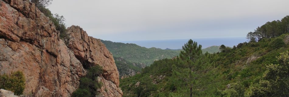 Nous avons prévu de déjeuner à l’Auberge des Aiguilles de Bavella au col du même nom qui est à 2h30 de marche. Nous prenons donc le temps de déjeuner face à un beau paysage. Nous partons vers 8h30, après avoir fait le plein d’eau à la source qui se situe à une centaine de mètres …