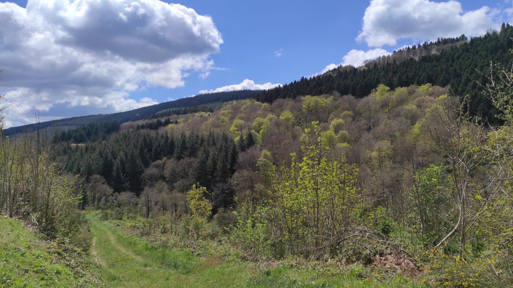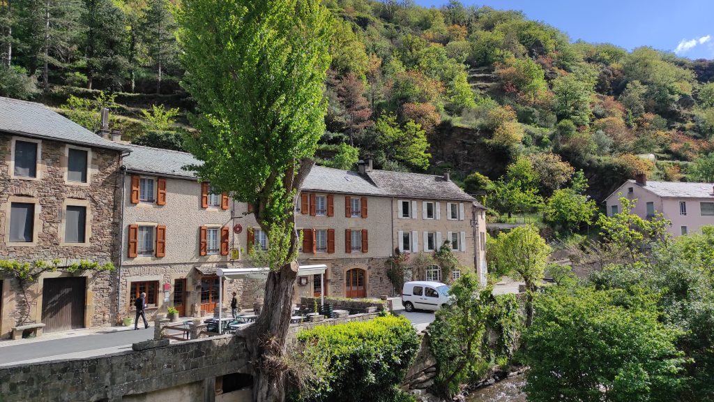 Le thermomètre affiche 8° quand nous quittons Brousse. Nous longeons le Tarn puis empruntons la D902 vers Rebourguil, la route est en super état avec de beaux virages où Grisette peut exprimer son potentiel, même en duo et les valises pleines ! Nous passons ensuite par Belmont-sur-Rance pour rejoindre Lacaune par la D32 qui traverse le parc du Haut-Languedoc. Les routes sont farcies de virages qui serpentent dans des paysages magnifiques.