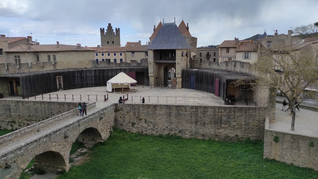 Nous arrivons à Carcassonne vers 15h et nous baladons dans les petites rues de la cité. Nous visitons le château et les remparts. Le vent fort nous gâche un peu la visite mais les remparts offrent de belles vues sur les alentours.
