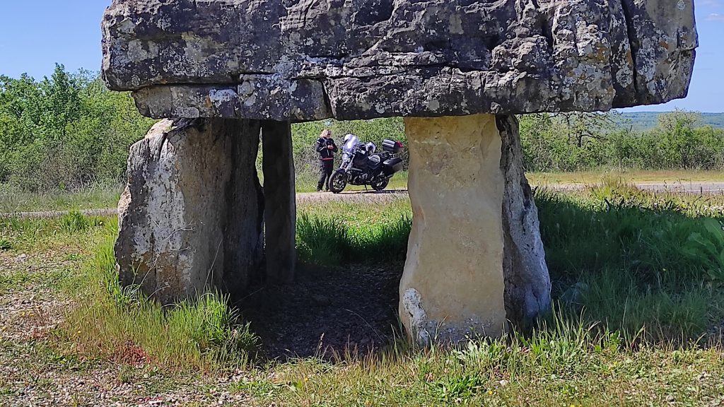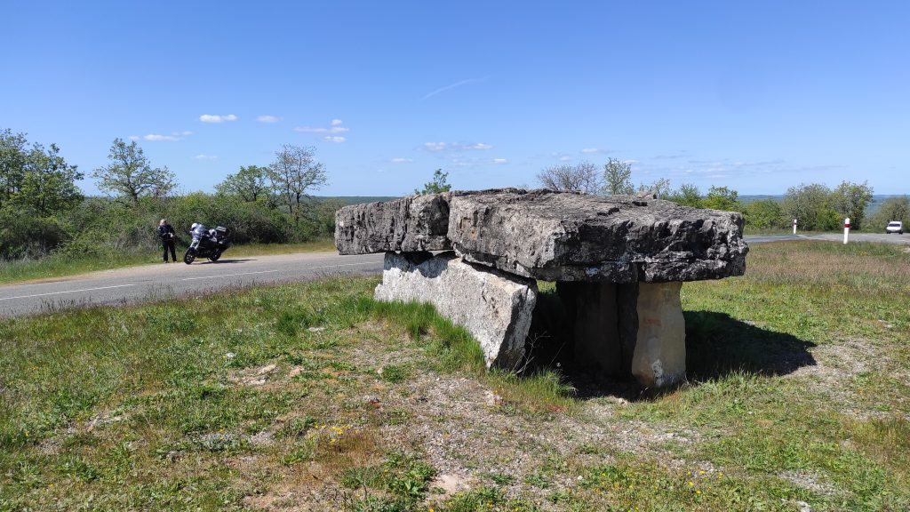 Nous continuons toujours par les petites routes, peu après Saint-Antonin-Nobleval, nous tombons sur un dolmen au bord de la route. Il est assez imposant et bien dégagé. Gentiment, il se prête à mes lubies photographiques !