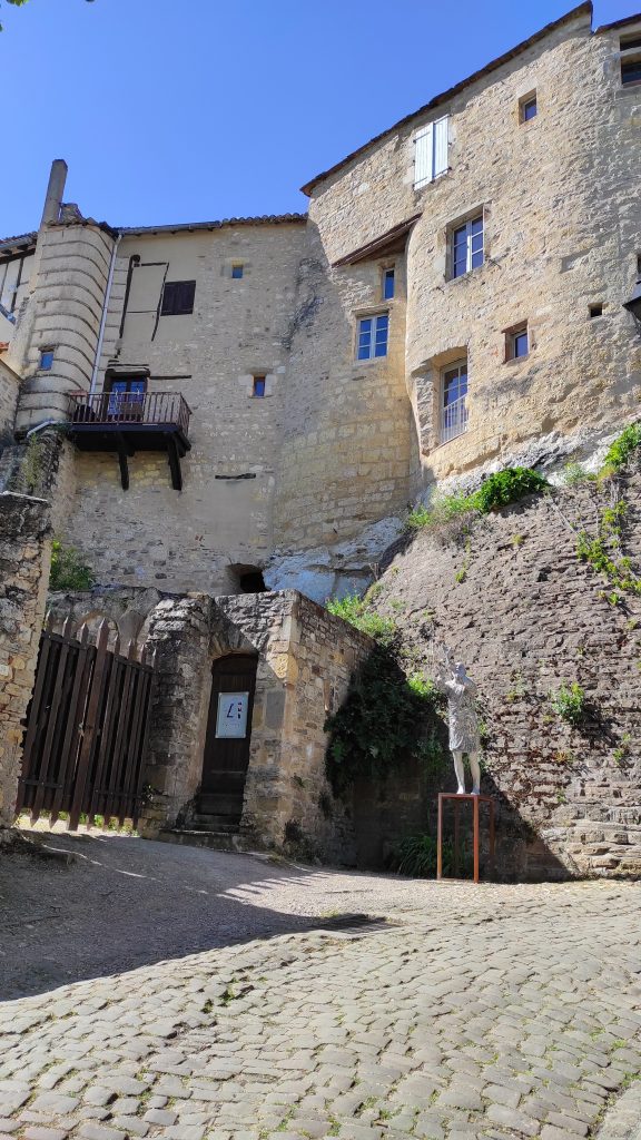 Nous continuons jusqu’à Cordes-sur-ciel la bien-nommée. En effet cette ville bâtie sur un promontoire apparaît au détour d’un virage comme posée entre ciel et terre. La visiter se mérite car il faut gravir 160 mètres de dénivelé par ses rues pentues pour atteindre le centre de la cité médiévale. Mais la grimpette veut vraiment le coup !