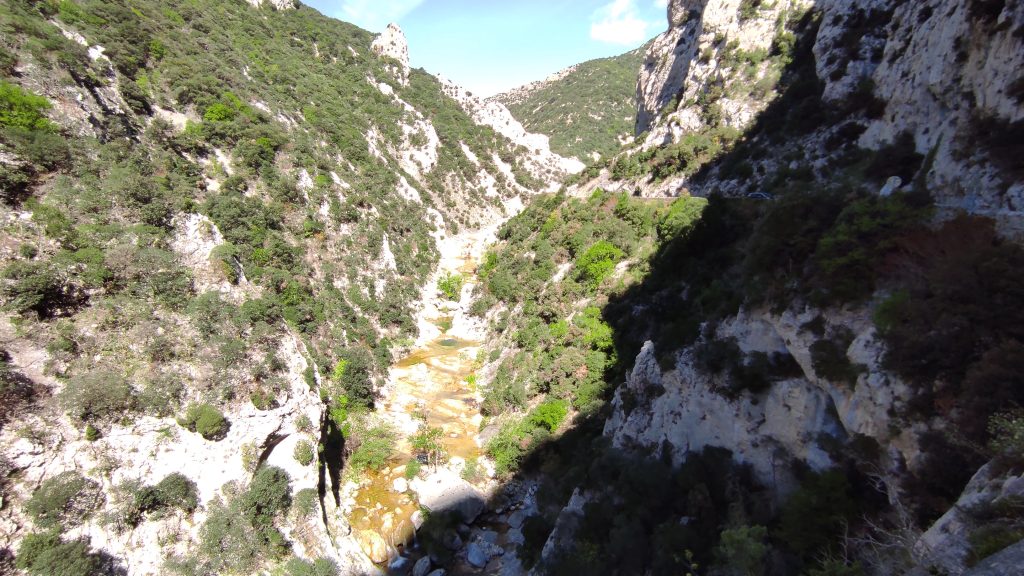 Aujourd’hui, jeudi 25 avril, nous commençons notre retour au bercail qui va se faire en deux jours. Tout d’abord nous traversons les toujours aussi belles Gorges de Galamus. Il y a du soleil et peu de monde.
