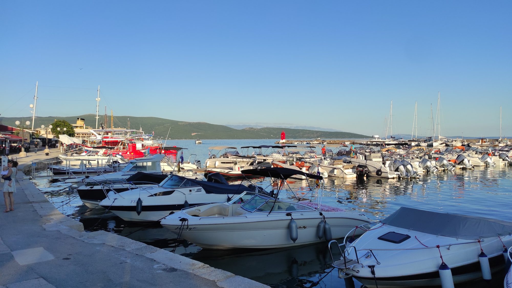 Nous traversons l’impressionnant pont de Krk et faisons une pause à Omisalj, petite cité portuaire à l’entrée de lîle, le temps de manger une glace à l’ombre car la température a augmenté et nous flirtons avec les 27°.