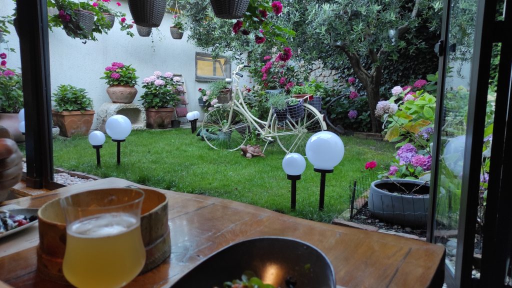 Bernard a repérer un bon resto mais il y a déjà une importante file d’attente. Nous continuons à déambuler et trouvons un restaurant italien où nous nous régalons de petits poissons, de spaghetti à la truffe pour Bernard et d’un risotto à l’encre de seiche pour moi.