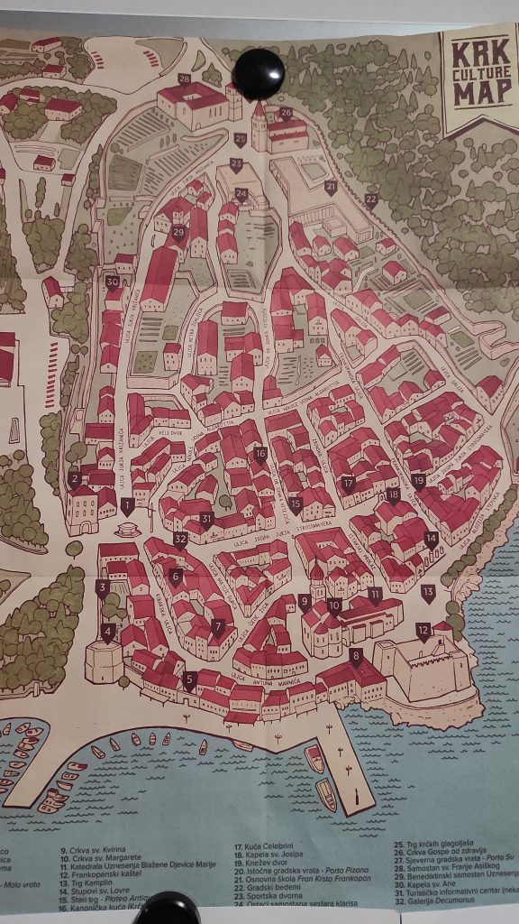 Nous arrivons en fin d’après-midi à Krk où nous avons réservé un hébergement dans une villa. La chambre est spacieuse avec une jolie salle de bains. Nous décidons de rester dan le coin demain et réservons aussi la nuit de vendredi à samedi. La dame nous fait le même prix que Booking.