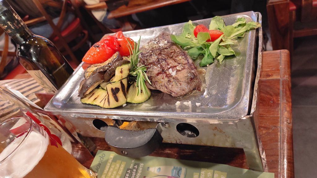 Nous partons dîner dans une birrificia, une brasserie où nous nous régalons de bières locales et d’une super bavette de black Angus.